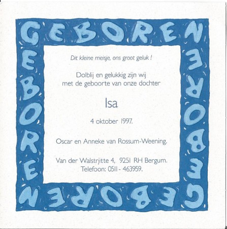 Startpagina > Trouwboekjes en kaarten familie Romke Weening > Geboortekaart Isa.jpg